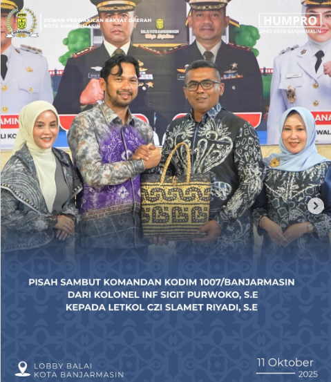 Kepada Bapak LETKOL CZI SLAMET RIYADI, S.E “. Acara dihadiri langsung oleh Bapak Rikval Fachruri Ketua DPRD Kota Banjarmasin, serta Bapak Muhammad Isnaini, S.E., M.M, dan didampingi Anggota DPRD Kota Banjarmasin.